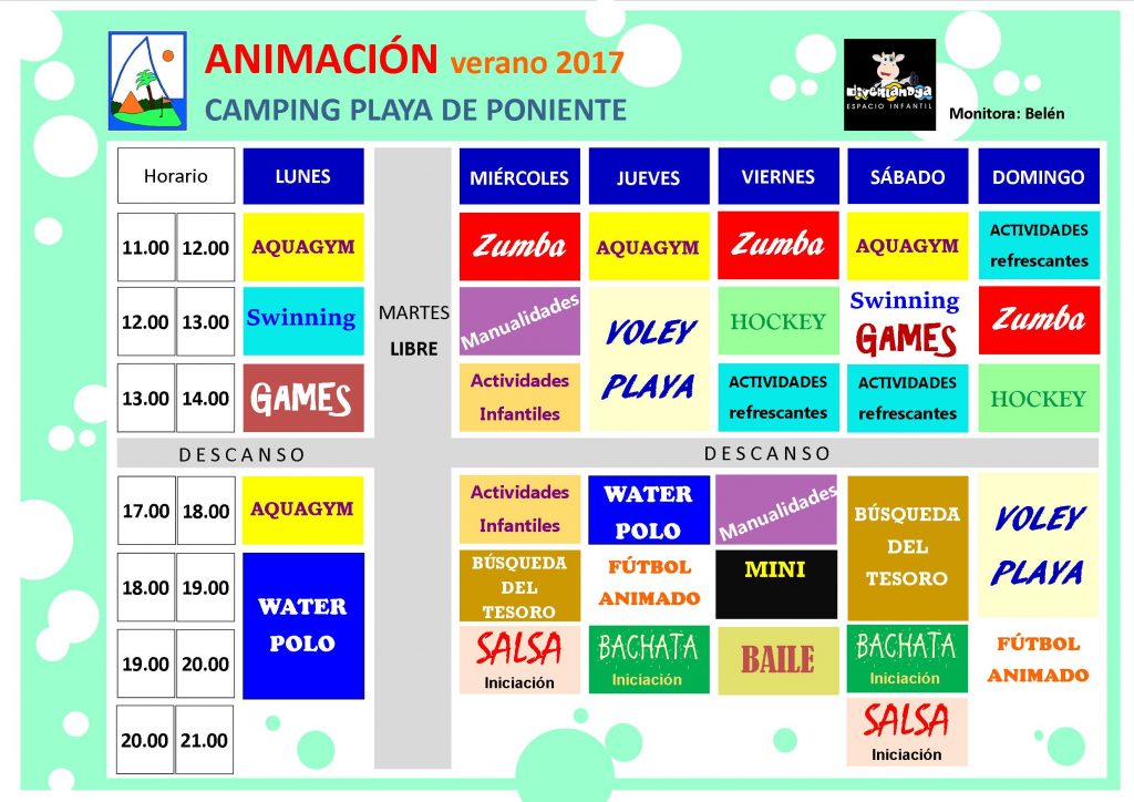 ¡Déjate llevar y disfruta tu verano con nosotros!. Como cada año, Camping Playa de Poniente ofrece una amplia programación de animación para niños, jóvenes y aquellos que nos presten la mejor de sus sonrisas!. ¡A divertirse!
